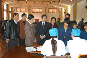 高康校长陪同姚伟书记和毛长红局长首先来到全校师生“甲流”疫苗接种室。姚书记向医务人员和师生询问了接种的反映。他嘱咐道,“甲流”防控工作已经成为全社会关心的热点问题,虽然大众工业学校至今未发生一例甲流病例,但防控工作也绝不能松懈。他要求全校教职员工充分认识“甲流”防控工作的重要性,在做好防控工作的同时,从思想上关心好学生,营造安全健康的校园氛围,让学生健康成长,让家长放心满意。