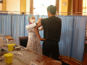本周我校根据区教育局、区疾控中心统的要求,统一安排全校师生接种甲流疫苗。接种期间我校严格依照规定,按预检、登记、接种、留观四个程序进行,接种甲流疫苗后提醒师生留观30分钟以上,不参加剧烈运动;24小时禁止洗澡;多喝开水;如发热38度以上者带好病历卡、接种卡前往区中心医院就诊。