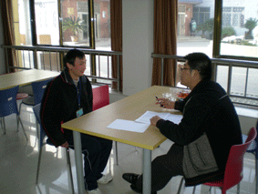 受限于公司对学生年龄的要求,很大一批想报名的学生都被拒之门外。尽管如此,仍有近百名学生参加了面试。由于人数众多,整个面试过程一直持续到傍晚六点左右。面试结束后,公司李经理和学校市场部的朱主任对面试的情况作了交流。李经理认为多数学生给他的印象是“训练有素,谦逊知礼,精神面貌很好”,对学生的总体表现比较满意,也非常钦佩学校的办学实力和管理水平。