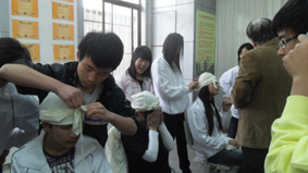 救护为人道,健康迎世博。世博会的脚步日益临近,为了向世界展示一个文明的上海、可爱的上海、精彩的上海,根据《上海市人民政府办公厅关于印发2008年市政府要完成的与人民生活密切相关的实事的华体会体育》,按照构建社会主义和谐社会的目标,提高自救互救的意识和能力,坚持弘扬“人道、博爱、奉献”的红十字精神,体现保护人的生命和健康的宗旨,日前,我校与菊园新区联合举办了学生紧急救护培训班。