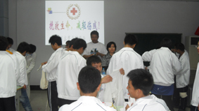 本次培训班分别于3月20日、21日二天在机电实训中心、电气实训中心相关教室进行。数控部0897、0898、0899三个班90位同学在杜文强、李继先、须立峰、高畅老师带领下,认真参加了培训,完成了心肺复苏、止血、包扎、骨折固定的学习和测试,提高了自救互救的本领。