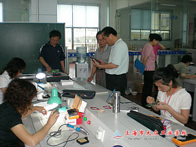 数学、英语和语文教学组的培训课是以:对新教材的探讨和研究,研究和探讨高教版教材要求和授课进度,为下学期的教学做准备。数控教学部以计算机辅助设计UG为软件培训。汽修组集中培训学习提升后的职业技能鉴定文件,学习汽车新技术。电气组的培训内容是,根据电子产品的原理图、安装图组装电子产品,教师们学习得很认真,瞧他们个个聚精会神。计算机组请来了三维动画专家讲授,学习制作简单动画短片,空间图形绘画等。机电以车工和钳工的四级、五级为培训计划,集中学习和自学穿插进行。艺术组的教师们真是多才多艺,她们以艺术融汇贯通达到技能培训目的,看她们一起学习制作的作品,真是精美绝伦!