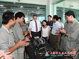 两位大众变速器公司的领导兴致勃勃地参观了学校的实训中心,客人们对我校已经竣工的汽修实训中心很有兴趣,高康校长向客人们介绍了把我校汽修实训中心从前台接待到整车维修各个环节的操作过程,还把我校实行的“4S+ES”的教学模式进行了解读, 在参观过程中,Mehrlaender先生津津有味的看着同学们拆装着发动机、变速器等零件,偶尔还向同学们传授一些理论和实践知识,同学们听完后掌声不断,都非常的喜欢这位极具亲切力的外国“老师”。