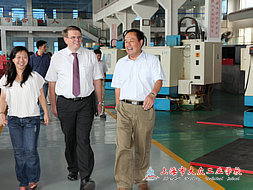 随后Mehrlaender先生饶有兴趣地参观了学校的其他实训中心。来到机电实训车间和数控实训车间,看到学校与摩森精密机床有限公司、上海巴伐利亚咨询有限公司的合作项目时,详细询问了学校开展校企合作的情况。高校长介绍了学校基本情况,Mehrlaender先生听了高校长的介绍后,对于我校以学生为本的办学理念,锐意进取的教育教学改革魄力给予了赞许,Mehrlaender先生说,能把知名企业请入学校,将人才培养与学生就业无缝对接,提高毕业生的就业率和就业质量,结合企业制定的各岗位具体教学内容调整教学计划,将企业标准融入教学标准、企业文化融入学习过程,以企业需求为主导,采用融入式校企合作办学模式,这样不仅解决了教学任务与生产任务的矛盾、教学过程与生产流程的矛盾,也让学生技能实训紧贴企业生产实际。