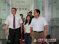Mehrlaender先生还详细询问了学校的总体发展思路和学生培养目标以及就业推荐形势,对实训中心完备的设施、严格的管理表示了赞赏。他非常认同我校的办学思想,在强调多学技能多考证的前提下,学会做人,全面发展。