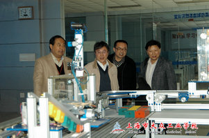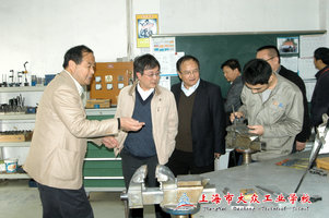 印杰副主任在高康校长和俞勇彪副局长的指引下兴致勃勃地参观了学校的实训中心,首先参观了我校新建成的的汽修实训中心,高校长向印主任介绍了我校汽修实训中心从前台接待到整车维修各个环节的操作过程,还把我校实行的“4S+ES”的教学模式进行了解读。随后印杰副主任饶有兴趣地参观了学校的其他实训中心。来到机电实训车间和数控实训车间,看到学校与摩森精密机床有限公司、上海巴伐利亚咨询有限公司的合作项目时,详细询问了学校开展校企合作的情况。高校长介绍了学校基本情况,印主任听了高校长的介绍后,对于我校以学生为本的办学理念,锐意进取的教育教学改革魄力给予了赞许,印主任说,能把知名企业请入学校,将人才培养与学生就业无缝对接,提高毕业生的就业率和就业质量,结合企业制定的各岗位具体教学内容调整教学计划,将企业标准融入教学标准、企业文化融入学习过程,以企业需求为主导,采用融入式校企合作办学模式,这样不仅解决了教学任务与生产任务的矛盾、教学过程与生产流程的矛盾,也让学生技能实训紧贴企业生产实际。参观完学校实训中心后,印杰副主任还详细询问了学校的总体发展思路和学生培养目标以及就业推荐形势,对实训中心完备的设施、严格的管理表示了赞赏。