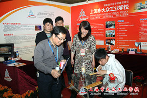 在参展的过程中我们可以看到,随着近几年职业教育的发展,很多参观者、游客和家长都把目光转向职业教育。在三天的教育博览会上,我校通过视频、展板、发放资料等形式,展示了我校近年来优异的办学成果。以领导关怀、硕果累累、技能精湛等多种展板和宣传资料全面直观的反映出我校办学理念、办学特色、优质教育和雄厚的师资队伍,展示了近年来的教学成果及长足发展。电视画面播放更直观生动的展示了我校的风采。来我校展台前咨询和索取学校资料的家长和学生络绎不绝,有不少市民一边翻阅、领取宣传资料,一边询问招生章程,工作人员向家长介绍了我校各类特色专业、历届毕业生的就业方向、2011年的招生规模政策等问题,受到家长和学生的广泛好评。许多家长在经过我校展位时,对我校的艺术文化深感兴趣,市场部朱晓老师把我们学校的专业设置、艺术文化一一为他们介绍,我校部分学生在老师的带领下每天分批至教博会参观,同学们深刻感受到上海教育的庞大,尤其是中职教育在日新月异的茁壮成长。