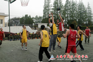 第四节比赛真的可谓是扣人心弦,一开始我方控制球权,金玉林老师控球,过半场后穿球给篮下的邱建兴老师,对方球员见事不妙,飞快赶来扑防,不过邱老师的球已出手,可对方球员刹不住车,还是与他撞了个满怀,大家目不转盯地盯着球,只见篮球故意想和他作对似的,在篮筐上弹了几下,才慢慢掉了进去。邱老师跃起身来,大声叫着,挥舞着拳头。这时,对方发球,在我们还没有戒备之时打了一个突袭,他们也是两个人打到篮下被我方三人包夹后把球穿到外线,不过被我方干扰了一下球,但是我方球还没拿稳,就被对方一把抓走,后撤一步就投三分球,球从空中划过一道美丽的弧线,进了!全场又一次沸腾了… … 为了保存战果,我们采用了拖延战术,但不想防守有误,被对方连进几球,在最后的十几秒我们竟然落后了2分,我们的樊老师赶紧叫了暂停,换上了两名中锋和三名投手,我方开球之后,为了不让对方抢到球,练老师不停飞奔在场上找机会传球,不过海警支队的队员身体强壮一对一防守很难摆脱,最后5秒传给了汪老师,汪老师超远三分球出手,“嘟——”全场结束的哨声响起,此时全场队员和观众们看着球在空中向篮筐方向飞去,“咚——”,球打在篮板上弹了回去。