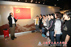 拾级而上,进入序厅,迎面而来是“开天辟地大事变”七个苍劲有力的大字,深红的背景图片暗示了历史的变迁。馆中详实的文字和图片资料,让大家更为深刻地了解了中国共产党诞生和我党由小到大,从弱到强的发展过程。“开天辟地”、“光辉历程”两大主题展,以“党的成立和中共一大”为重点,描摹了中国共产党领导人民探索救亡图存道路,进行革命战争成立新中国,不断进行中国社会主义事业建设的艰苦历程。