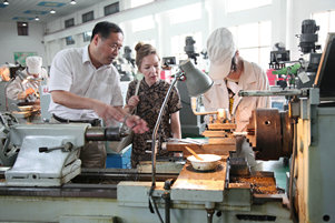 接着,德意志联邦共和国驻上海总领事馆凯西博士对学完德国工商大会(AHK)模具机械工课程的同学们表示热烈的祝贺。凯西博士对学生们说,你们的家长和你们自己都很有眼光地选择了这门合作课程。她还说到,在现代社会,生活有一系列的挑战和学习,在你们将来的工作中仍需继续提高你们所学的职业知识和技能,因为你们已学得的知识和技能将很快会过时。他衷心希望学生们能有一个喜欢的、满意的工作,并开拓自己的未来。