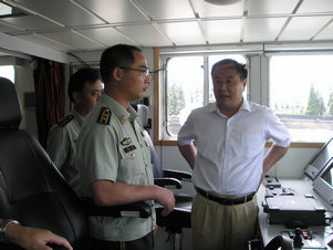 最后,在姜大队长的引导下,学校领导参观了舰艇,舰艇上战士们严格的纪律,熟练的战术赢得了大家的一致敬佩。