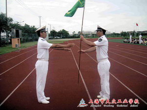 军训动员大会还举行了授旗仪式,承训教官从总指挥手中接过连旗,他们宣誓将以身作则,树立榜样,营造良好氛围,力求圆满完成今年的军训任务。