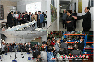市教委退休老干部在高康校长的指引下兴致勃勃地参观了学校的实训中心。来到机电实训车间和数控实训车间,看到学校与摩森精密机床有限公司、上海巴伐利亚咨询有限公司的合作项目时,详细询问了学校开展校企合作的情况。随后参观了我校的汽修实训中心,高校长向大家介绍了我校汽修实训中心从前台接待到整车维修各个环节的操作过程,还把我校实行的“4S+ES”的教学模式进行了解读。高校长介绍了学校基本情况,老干部们听了介绍后,对于我校以学生为本的办学理念,锐意进取的教育教学改革魄力给予了赞许,张福顺副处长对大众工业学校把知名企业请入学校,将人才培养与学生就业无缝对接,提高毕业生的就业率和就业质量,结合企业制定的各岗位具体教学内容调整教学计划,将企业标准融入教学标准、企业文化融入学习过程,以企业需求为主导,采用融入式校企合作办学模式,这样不仅解决了教学任务与生产任务的矛盾、教学过程与生产流程的矛盾,也让学生技能实训紧贴企业生产实际。参观完学校实训中心后,老干部还详细询问了学校的总体发展思路和学生培养目标以及就业推荐形势,对实训中心完备的设施、严格的管理表示了赞赏。