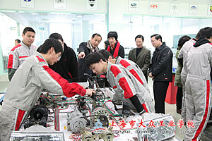 我校高康校长、梁桦书记引导上级领导们来到大众工业学校汽修实训中心。李原副区长和各位领导参观了汽修实训中心的销售过程和维修车间,并与正在上实训课的师生进行了沟通交流。汽修教学部的学生们运用所学的技术,向各位来访的领导们展示了保养汽修等日常操作,李原副区长兴趣勃勃观看的同时,与师生们亲切交谈。在参观过程中,副区长询问了学生的学习情况、未来的工作出路以及汽修专业生源等各方面情况,尤其对于中职生的就业以及今后的发展格外关注,高康校长就上级领导提出的问题一一作了回答。