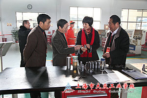 为进一步加强嘉定区职业教育的建设,积极引导嘉定区职业教育在新一轮发展中正确定位,全面提升上海技能人才的培训质量,2011年12月13日上午九点,嘉定区副区长李原、嘉定区教育局党委书记姚伟,教育局局长毛长红,副局长俞勇彪,成职教科科长张剑锋,办公室主任黄伟杰等一行8人来到华体会体育进行工作调研。大众工业学校校长高康、党总支书记梁桦、杨建英副书记、陆浩勤副校长、工会主席朱凤芬等主要领导和学校各部门负责人等进行热情接待。