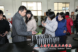 首先在练子飞老师的带领下,大家兴致勃勃地参观了学校的各个实训中心。练老师不仅介绍了我校汽修实训中心从前台接待到整车维修各个环节的操作过程,还把我校实行的“4S+ES”的教学模式进行了解读,在机电实训车间和数控实训车间,让大家看到学校与摩森精密机床有限公司、上海巴伐利亚咨询有限公司的合作项目,大家听了练老师的介绍后,对于我校以学生为本的办学理念,锐意进取的教育教学改革魄力给予了赞许。随后在练子飞老师的引领下,团干们来到大众工业学校的体育馆,羽毛球社、乒乓球社正在上课,街舞社的学生活力四射,体育馆里充满了激情的运动之美,电声乐队的大气磅礴让人震撼。团干们还参观了篮球社、足球社、陶艺社等几个社团。他们纷纷对我校社团蓬勃发展赞叹不已,感叹我校的社团搞得比一些高校都要好,看到学生脸上流露出的自信神情,更是说明社团发展最终得益的是学生。