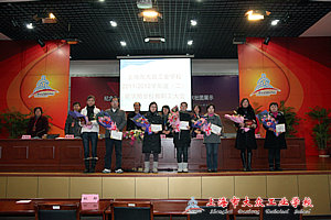 首先由杨建英副书记宣读了《关于表彰2011—2012学年度第一学期优秀教职工的决定》,并由校领导向37位获得上海市中等职业学校第六届教师教学法改革交流评优学校初评活动一等奖获得者、大众工业学校标兵班班主任、示范班班主任、办公室文化建设评比活动获奖办公室代表老师颁发了荣誉证书。杨建英副书记希望受表彰的教师珍惜荣誉,戒骄戒躁,再接再厉,做好表率,把自己的榜样作用辐射给身边的每一个人,带领大家共同进步,共同提高。