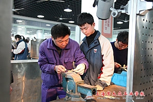 动员大会结束后,学生们参观了学校的车工实训车间、数控实训车间、汽修实训车间、电工电子实训车间,让大家对我校的学工环境有个初步的了解。之后,4个班的学生分成两部分,分别参加钳工操作和电子作品制作两个项目的学工实践。