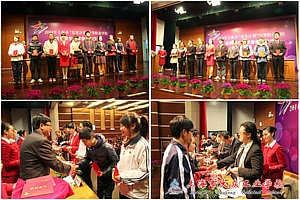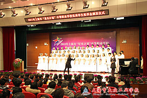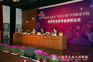 上海市“中职学生星光合唱团”的同学们首先为全体人员表演了大合唱《Fly away》和《丰年祭》,会议在两首愉悦的歌唱声中拉开了帷幕。会议由市教育发展基金会办公室主任戴建祥主持,上海市教委职成教处处长王向群主持并通报了2011年“星光计划”优秀学生奖学金的评选情况。王处长指出,每一次的评选工作是为加快推进中等职业教育内涵建设,全面提高学校教育教学质量,坚持“以就业为导向,以能力为本”办学指导思想,坚持“做学一体”教学理念,加强学生职业技能训练,促进课程改革,推进教学改革,鼓励本市中等职业学校在校学生积极参加“星光计划”学生职业技能比赛,在全国技能大赛、“星光计划”技能比赛以及学校组织的职业技能训练和比赛中表现突出取得佳绩的优秀学生。紧接着,上海市人力资源和社会保障局副局长应鸿庆宣读了获奖名单,大众工业学校郑解斅同学和各个学校的获奖学生代表纷纷上台领取了代表自己荣誉和辉煌的奖状。