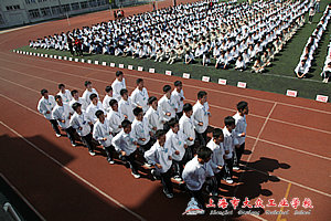 进场音乐响起,在陆浩勤副校长的统一指挥下,15个参加展示的班级依次入场。整齐的步伐、飒爽的英姿,给全校师生带来了最为热切的开场。同学们精神饱满,斗志昂扬,展现出了良好的精神面貌,“大众数控,服务大众”,“加强文化,实现理想”,“机电机电,和谐奋进”,“汽修专业,勇往直前”,“把握信息,把握未来”,“文科文科,天天向上”,“大众电气,团结奋进”……各班级学生喊着本部门的口号,伴随着慷慨激昂的运动员进行曲,依次从主席台下通过,赢得在场师生热烈的掌声。