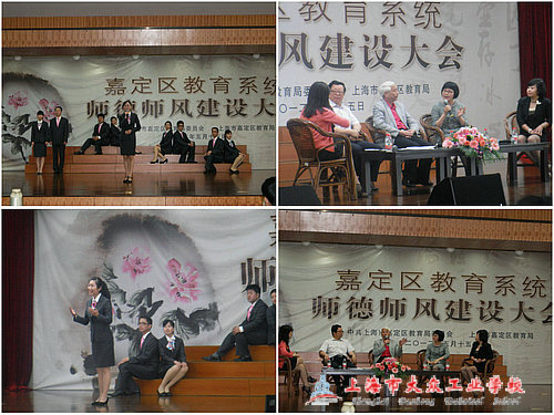 为进一步推进上海市嘉定区师德师风水平的不断提高,努力培养一支师德高尚、业务精湛、结构合理、充满活力的教师队伍;也为加快推进嘉定区“十二五”教育改革发展,实现“市郊领先”的奋斗目标提供强有力的队伍保障,由中共上海市嘉定区教育局委员会、上海市嘉定区教育局共同组织的“嘉定区教育系统师德师风建设大会”于