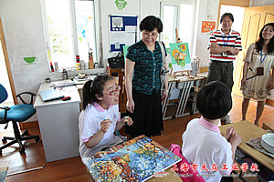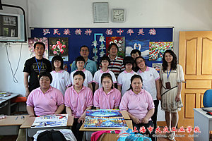 随后,慰问组来到成佳学校,初职班10位女生还向我校教师展示了亲手绘制的油画,现场气氛十分感人热烈。慰问组为10位特殊学生送上了慰问品,勉励他们刻苦学习,坚强生活。活动最后,成佳学校领导、我校慰问组老师以及学生代表合影留念。