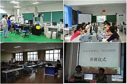 此次培训覆盖到所有的基础课教师与专业课教师,公共课教师分成了英语培训小组、综合培训小组;专业课按专业分成数控、机电、模具、汽修、电气 、信息、文科7个培训小组,分别学习某一项技能操作或拓展知识训练。尽管是校本培训,但培训地点绝不仅限于校内,而是“四处开花”: