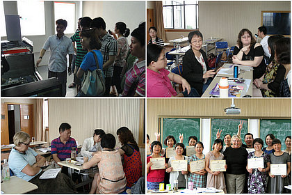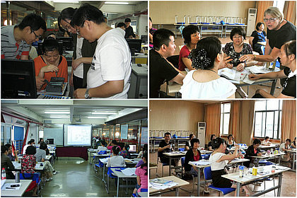 上海工业技术学校为我校数控培训小组量身定做了“UG五轴加工”培训计划安排,还有模具、机电专业的课程;上海市高级技工学校为电气综合培训小组安排了等针对电路设计和仿真软件使用的内容外,还特别安排了“西门子PLC的应用”,填补了我校电气部西门子PLC的空白;“我的关爱健康咨询中心”为我校文秘、会计等专业老师安排了职业实用礼仪、职业心理健康与压力管理等;上海市中职师资培训基地为综合培训小组安排了职业教育改革、信息技术运用、教育心理学的运用等课程内容,共140个学时;博世凯进修学院为英语小组安排系列的外教课程;汽修培训小组参加了由同济大学职业技术教育学院主办的汽车专业理实一体化课程改革培训班…….教师每天赶早分赴各培训地点,认真学习培训内容。