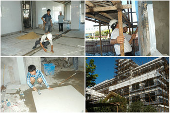 今年暑期,学校有多个基建项目同时进行,包括校安加固工程、运动场地维修、实训场地维修、校门口改造和学生公寓楼维修改造等。施工方、监理部门以及学校校方多方联手,用各自的努力来确保各项工程的顺利进行和圆满完成。特别是监理单位和学校分管领导朱凤芬副校长及基建的几位同志,放弃暑假的休息时间,每天到校,确保了暑期各项工程的顺利开展。