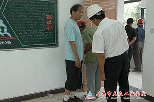 分管领导朱凤芬老师及总务基建的几位同志,每天都要到工地去兜一圈,掌握第一手资料,对不符合要求的内容直接要求建设方整改,及时把握工程进度,确保按时完工。由于涉及工程较多,一圈兜下来至少需2个小时,且地上灰尘满布,又遇上海遭遇连续高温,全程下来早已汗流浃背,腿脚鞋子也沾满了灰尘,但是所有的同志都克服且坚持了下来,为的就是学校能够顺利开学。