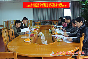 | 黄巍主任主持了会议。汇报中,课题组长陆浩勤简要说明了课题的研究意义、研究目标、研究内容、研究方法、研究步骤,重点对前期所开展的研究工作进行了阐述。首先分析并明确了“专业教学”、“中职德育内容”、“德育渗透”、“德育渗透模式”四个概念,然后从中职德育《德育大纲》的要求、以及中职德育实践工作的现状及其问题进行了现状分析,并对专业教学中的德育渗透的现实可行性进行了调查,并明确了专业教学中德育渗透的内容、主要载体、途径及其渗透点,初步形成了专业教学中德育渗透的策略。 听完汇报后,李春华院长首先积极认可了课题组所开展的工作,无论是概念确定,还是现状分析,还是策略,论述清晰,功夫扎实。他提出,课题组下一步要做的工作有两项:一是提炼出“模式”,二是继续在“渗透什么”突出不同载体的侧重点。同时,他还提出了模式归纳的建议,并建议编写一本专业教学中德育渗透的实施手册。科研员沈涛在给予肯定的同时,也提供了一些建议,如多提供一些案例以丰富内容、制作实施手册可借鉴普通教育已有成果等。课题组成员也认真记录了两位专家的意见,积极与专家互动,黄巍主任也根据沈涛老师提到的“两结合”,拓展成为了“三结合”。整个汇报会在一片热烈的研讨中结束,专家的意见也给课题组中期的研究开展指明了方向。 校教研处 2012.11.29 |