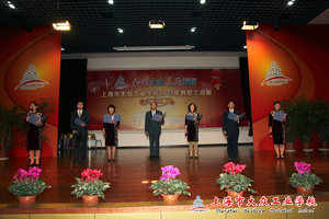 在一片热烈的掌声中,高康校长、梁桦书记带着校部的其他几位领导上场了,他们以配乐诗朗诵的表演方式深情地诉说着《我爱中国》,充满激情的朗诵掀起了全场的第一次高潮。