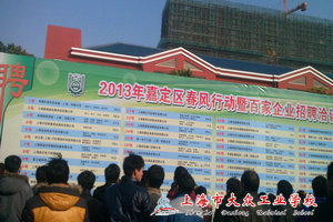 2月24日上午,2013年嘉定区“春风行动”暨百家企业招聘洽谈会在南苑中学举行。我校培训中心积极配合区人社局及外劳力管理所的此项惠民活动,派出人员设摊为外来务工人员提供职业技能培训咨询。由于很多招聘企业对员工技能要求越来越高,且技术工的薪资相对其他普通操作工更高,前来咨询的不少外来人员当场就填写了培训报名表。