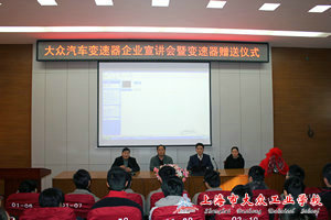 2013年3月6日上午,大众变速器(上海)有限公司人力资源部领导来我校举行了企业招聘宣讲会,我校机电教学部、数控教学部、汽修教学部、巴伐利亚培训班等50多名学生参加了此次宣讲会,高康校长出席。