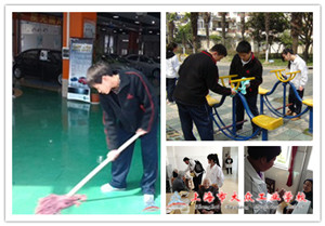 从学校的实训车间再至敬老院,他们的身影给人给留下了许多印象。1191班数控青年团员们来到了实训车间帮忙打扫卫生,给实训车间内正在为星光杯比赛做准备的同学们提供良好的学习环境;1112班志愿者为敬老院老人弹弹曲子,陪她们聊聊天,给她们带去了久违的阳光与快乐。养老院的奶奶们好长时间没有照相了,很想照几张照片,同学们还专门带上照相机,给老人们拍拍照;汽修教学部志愿者服务队为嘉定汽车销售公司打扫卫生,拿抹布擦拭起展厅内的桌椅和窗户玻璃,以及擦拭销售样车,并以优秀的中职生形象赢得了好评;计算机教学部志愿者在老师和居委领导的指示下,分成三个小组,第一小组负责小区宣传栏和健身器材的清洁,第二、三小组分别到社区内的一位残疾老人和孤寡老人家里帮忙搞卫生……
