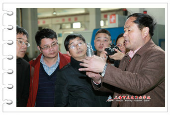 在高校长的指引下,一行饶有兴致地参观了整个校园,从作品琳琅满目的陶艺室开始,然后一一参观了我校各大实训中心,尤其是更新升级后的数控实训中心、正在建设当中的模具实训中心。当中可视化教学管理、PLM教学设施、数字化仓储系统、规划一新的模具实训中心让一行耳目一新,感慨不已,期间不少参观者纷纷举起手中的手机进行拍照。过程中恰逢课间操期间学生集队入场,整齐的步调、响亮的口号、有序的入场,震撼的气势极具感染力、冲击力,让一行赞叹不已。
