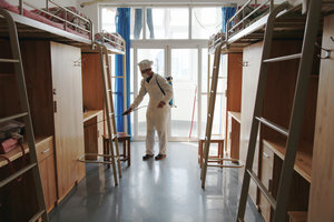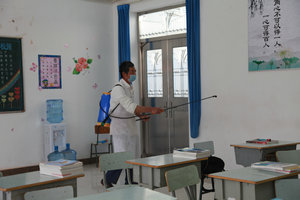 四是全面做好学校的消毒工作。学校两位校医利用双休日时间,对全校的教室、寝室、厕所、及实训场地进行全面消毒,积极做好防控工作。