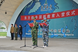 随后,东方绿舟军体活动部部长潘继征谈了几点素质教育的看法,他说道:“这次国防教育活动,是同学们走出课堂,深入社会扩展视野、锻炼才干的良好机会。三天的活动虽然轻松,但是也会遇到许多困难,我们大众工业学校的军人们不能在困难面前望而却步,而应以钢铁般的意志,在努力中磨练自己,使自己变得更坚强、更勇敢、更自律。用拼搏的汗水冲刷娇气和懦弱,用优异的成绩去证实自己人生的价值。”