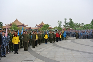在未来广场举行的开营仪式上,营地主教官王国利首先对35个连队整理了队列,“立正!”,“向前对正!”伴随着军令声,大众学子们个个精神抖擞,士气高昂,他们按照教官的要求严格完成了下达的任务。