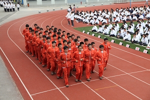 进场音乐响起,在陆浩勤副校长的统一指挥下,17个参加展示的班级依次入场。整齐的步伐、飒爽的英姿,给全校师生带来了最为热切的开场。同学们精神饱满,斗志昂扬,展现出了良好的精神面貌,“大众数控,服务大众”,“加强文化,实现理想”,“机电机电,和谐奋进”,“汽修专业,勇往直前”,“把握信息,把握未来”,“文科文科,天天向上”,“大众电气,团结奋进”……各班级学生喊着本部门的口号,伴随着慷慨激昂的运动员进行曲,依次从主席台下通过,赢得在场师生热烈的掌声。