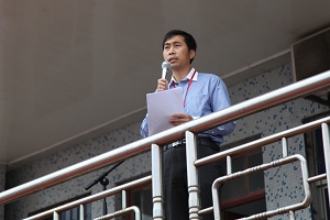 随后进行了颁奖仪式,内容包括劳动周先进个人、集体,校时政竞赛获奖个人和集体,本学期第一批自行车排放优秀班级,集队进场先进班级,以及四月份文明寝室、文明班级。