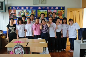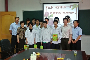 大众工业学校慰问组先行来到成佳学校,初职班8位女生还向我校教师展示了亲手绘制的油画,并向来访老师挥手致意,现场气氛十分感人。慰问组为8位特殊学生送上了慰问品,任德芳老师还勉励他们刻苦学习,坚强生活。活动最后,成佳学校杨校长、我校慰问组老师以及学生代表合影留念。