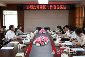 继5月份贵州省政府副省长挂帅的贵州省来沪教育考察团来校考察后,6月4日,贵阳市教育局领导一行5人再次来到华体会体育考察,嘉定区教育局副局长俞勇彪、科技学院的领导、及我校的高康校长、梁桦书记等热情接待。
