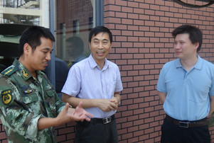 2013年7月31日,陆校长与金主任又驱车来到了江苏武警海警支队,江苏海警支队的张政委亲自下楼,接待了陆校长等一行人。作为多年来和我校军民共建的一支强有力的作战部队,此次的到访增进了两者之间的友谊,也为他们在8-1建军节之际送去了最真挚的慰问与祝福。