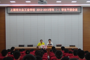 2013年9月13日中午12点30分,大众工业学校本学期第一次学生干部会议在阶梯教室召开,校团委书记练子飞主持会议并发表重要讲话。