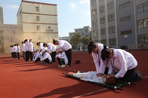 随后,大众工业学校救灾抢险队和学校红十字医疗救急队迅速进入“事发”现场。学生医疗员对部分“伤员”进行了简单的包扎急救,包括心肺复苏、骨折包扎、外伤处理等。