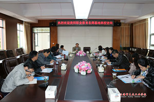 一行在27号楼2楼会议室落座后,高康校长应邀介绍学校发展历程及办学经验。高康校长简要介绍学校情况后,诚挚地分享了我校的办学经验:注重打造精品专业,以点带面加强专业建设,打造学校品牌专业,培养精品学生;保持办学方向与区域主流经济发展的一致性,专业建设保持动态调整;根据专业发展实际和层次,量体裁衣地开展不同层次的校企合作;强化“全员管理、严格管理、规范管理、自主管理”为特征的德育管理,加强校园文化建设和学生心理建设;注重师资队伍的发展规划与建设,开展多层次多平台培养。