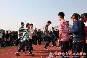 跳长绳比赛是华体会体育的一项冬季传统体育项目,至今已连续举行了多次。在华体会体育2013~2014学年(一)12级校园长绳团体比赛中,校长高康老师、陆浩勤副校长、付磊副校长、杨建英副书记、徐军校长助理等相关校领导多次来到比赛现场,为参赛选手们加油助威。从2013年11月26日开赛到2013年11月28日比赛结束,经过2天共45场次的比赛角逐,参赛队员和班级发扬团结拼搏的精神,最后12101班取得了第一名、1223班取得亚军、1261班获得第三名。