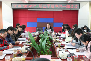 2014年2月11日上午9时,学校2013-2014学年度(二)新学期中层干部会议在406会议室召开。会议由高康校长主持,8名校级领导以及全体中层干部出席会议。此次会议是对新学期各项工作的全面部署,对点燃全体干部工作热情,对后示范校学校的新发展方向有重要的指导意义。