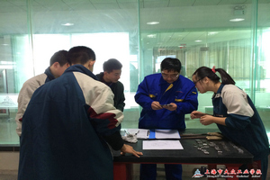 钳工操作的学习内容有:划线、锯削、测绘、锉削、钻孔、铣削等,所有的学习成果将在一个平面的汽车模型中体现。锯削是钳工的基本技能之一,既有劳动强度,又有一定技术难度,所以对于第一次接触锯削的同学们来说是一件较为辛苦的工作,尤其对于女生们来说,更是难上加难。指导老师把所有的同学集中起来开始讲解锯削所要用到的工具以及正确的使用方法,包括拿铁锯的方式和锯削时的站姿都要符合要求。最最强调的还是安全,因为在锯削过程中可能发生的潜在事故是非常危险的。所以每当同学们在操练时因为不熟练而手忙脚乱地伤了手,因为用力不当而锉坏了产品,指导老师们总是给予体贴的关心和耐心的指导。慢慢地,滴滴汗珠在同学们的额头上沁出,花朵一样的笑容在同学们的脸上舒展开来。当同学们听到师傅的赞扬声时,他们内心无比的激动。因为那一刻他们知道他们成功了。他们的辛苦受到了师傅的肯定。付出的汗水、泪水、辛苦换来了成功的喜悦。看着手上一道道伤痕就像是过往云烟那样不值一提。这就是他们用自己双手来开启成功之门,用自己的双手开拓他们的未来!